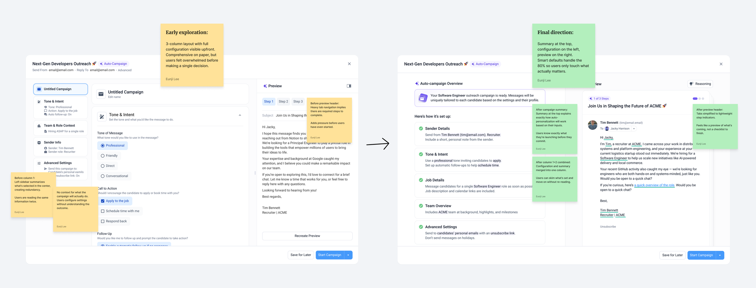 Users wouldn't adopt a black box. They needed to see what would be sent, understand why it was written that way, and be able to adjust or regenerate when something didn't feel right.